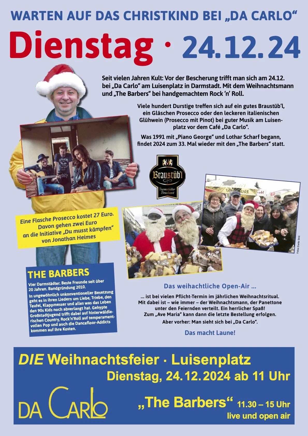 Wie jedes Jahr sorgen die Barbers für Musik, unser Weihnachtsmann für Panettone und wir natürlich für reichlich Spritz und Prosecco!